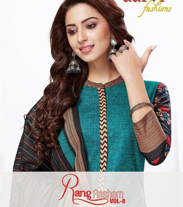 Aarvi Rang Resham vol 8 Price Per Piece: 545 INR  Minimum Order Quantity: 15 Pieces Full Catalog Price: 8175 INR + GST@5% Fabric Details:- Top dobby cotton 2.50 meter (approx) Salwar cambric cotton 2.50 meter...