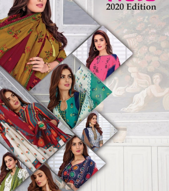 Catalog Patidar Textiles Fiza 2020 Edition vol 6Piece 12Rate of Per pc 325Price 3900Size UnstitchedFabric Pure CottonTop Cotton | 2.50 Mtrs Bottom Cotton | 2.0 MtrsDupatta Cotton | 2.25...