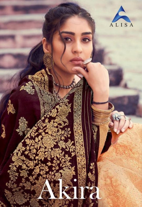 Catalog ALISA AKIRAPcs 6AVG. Price 1195Full Price 7170Size UnstitchedFabric Description:-AKIRATOP:-Silk jacard heavy Neck work &Additional diamond workInner:-SantunBottom: Japan santunDupatta:-Banaras JacardSpecial:-Banaras top & dupatta with best rate
