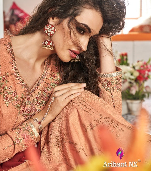 Catalog ARIHANT NX IMPRESSIVEPcs 6AVG. Price 795Full Price 4770Fabrics Details:-Top:= PURE MASLIN SILKInner-Hevy MALAI Crape All DesignsNote-Height 48″ To 52″Size- M-38 L-40 XL-42 XXL-44