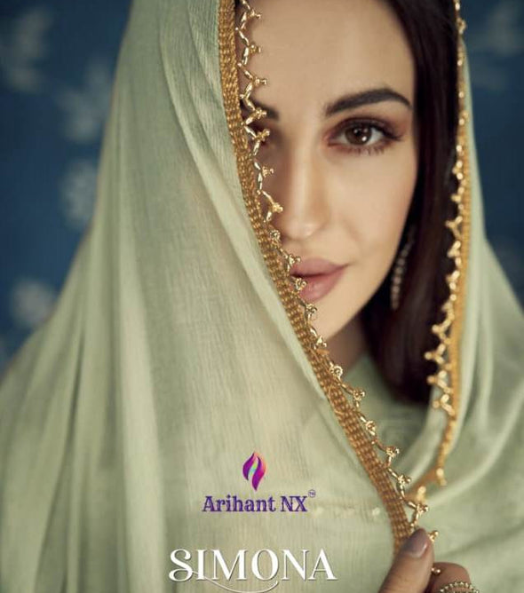 Catalog Arihant Nx SIMONA (D.No.41000 To 41005)Pcs 6AVG. Price 1395Full Price 8370Fabrics Details:-Top:= Apple JorjetInner(Bottom/Inner):=Dull SantoonPlazo:= Apple JorjetDuppta:=Nazmin(Full Stich Size )Size-M-38 L-40 XL-42 XXL-44(Note-Semi Stich Both Opation r Avleblie)