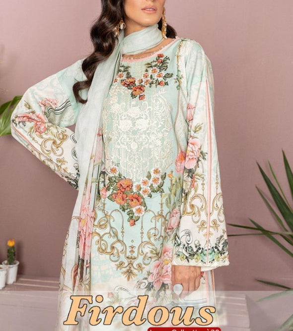 NAME : Zoya Firdous Lawn Collection 20 Jam Cotton Pakistani SuitsTOTAL DESIGN : 5PER PIECE RATE : 799/-FULL CATALOG RATE : 3995/-Type : Pakistani Salwar SuitsMOQ : Minimum 5...