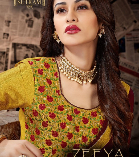 Catalog KAAYNAATPcs 5AVG. Price 1295Full Price 6475Size Semi-stitched,Fabric SATIN GEORGETTE(Fabric Details Mention in Image)
