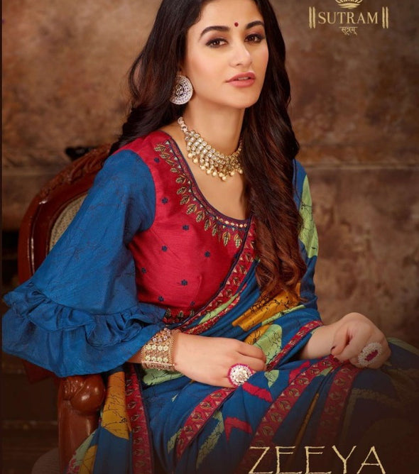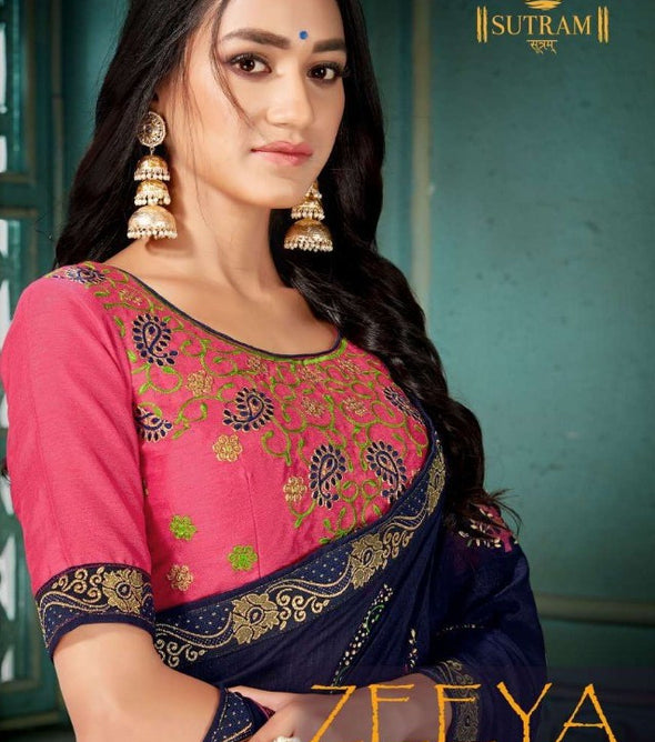 Catalog ZUBEDA AVANTIPcs 7AVG. Price 1295Full Price 9065Size UnstitchedFabric Chinon jaquard Pallu border with diamonds work