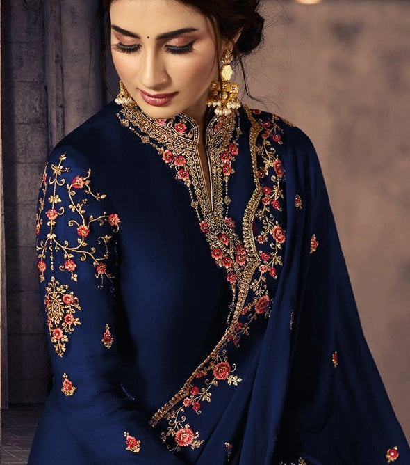 Top/Duppta/Sleeves-satin georgette with emb work with diamond stone | Bottom-santoon with emb work with diamond stone | Inner-santoon
