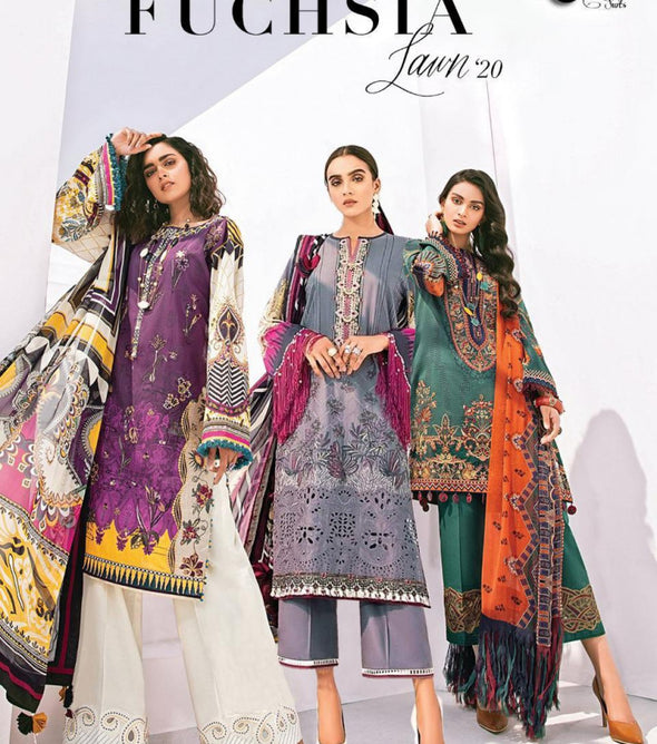 Catalog ZOYA FUCHSIA LAWN COLLECTION VOL 20Pcs 6AVG. Price 799Full Price 4794Size Unstitched Fabric Details Top : Cotton Printed With Heavy Embroidered PatchesBottom : Pure CottonDupatta : Chiffon Print / Pure...