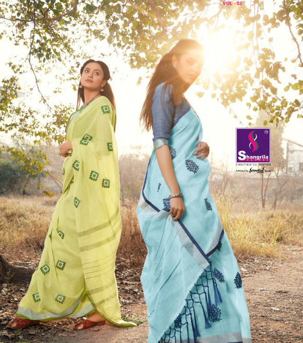 Catalog SHANGRILA KONKONAPcs 12AVG. Price 495Full Price 5940Size UnstitchedFabric LINEN COTTONShangrila’s Most Mangnhificent And Rich Collection Of Linen-Cotton Sarees With Authentic Handloom Art Prints Based On Mastered Art Of Weaving...