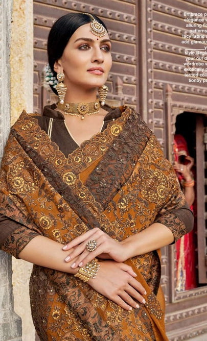 Kalista Maharani designer georgette embroidery worked saree collection in georgette with heavy embroidery work and with unstitched blouse full catalog collection available at wholesale rate at Stuff Export.