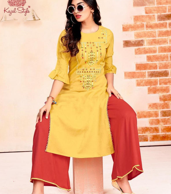 Catalog LIHAZ Pcs 7 AVG. Price 895 Full Price 6265 New Plazo Volume Full Stich Readymade Catalog Series Catalogue Name:- LIHAZ (D.NO.501TO 507) Fabrics Details:- Top:-Reyon Tow Tone Plazo:-Reyon Two Tone (Note:-Plazo Front Nd Back...
