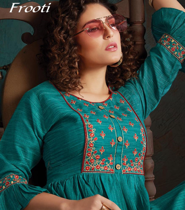 Catalog ARIHANT NX SILKPcs 6AVG. Price 1295Full Price 7770Kurti Series Gown Catalogue Name:-(D.NO.28001 To 28006)Fabrics Details:-Top:= Two Tone Silk Satin BarfiInner=Malai CrapSize : L