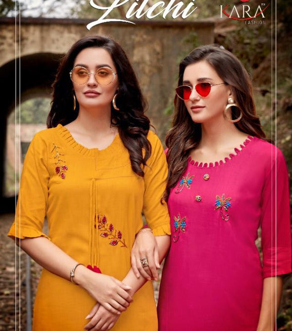 Kara Litchi 1 Casual Wear Rayon Kurti Collection with hand work full catalog available at wholesale rate