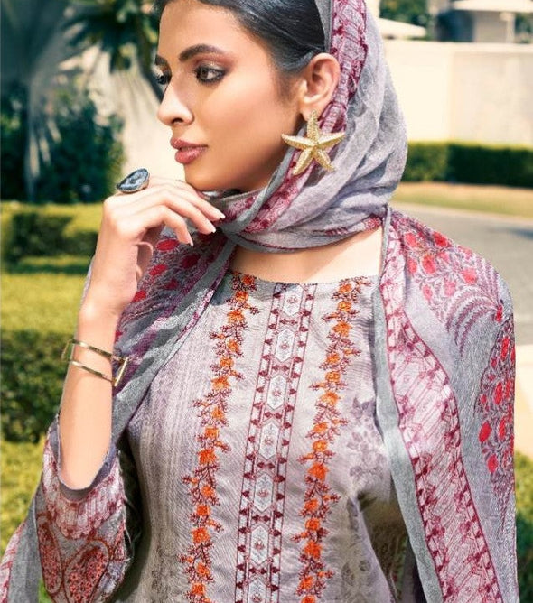 Top-Pure Crape Digital Print with Fancy Embroidery | Bottom-Pure Crape Dyed | Dupatta-Pure Bemberg Chiffon Digital Print