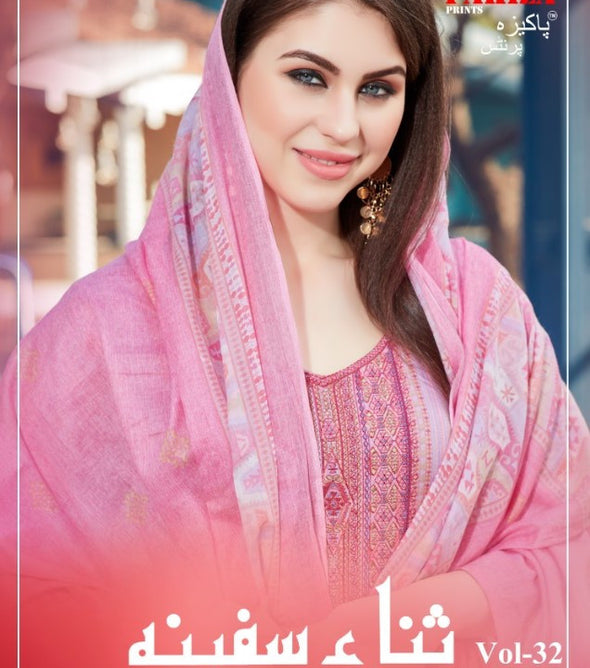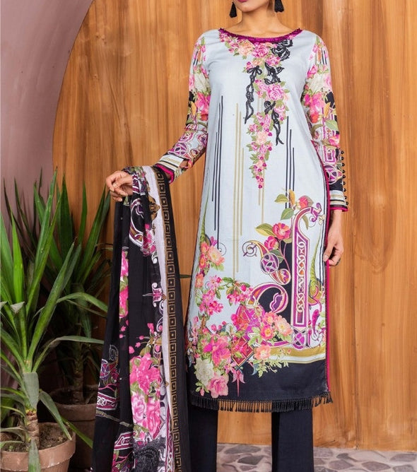 Top-Pure LOAN COTTON Digital Style Print With Additional Swaroski work | Bottom-Pure Cotton Solid | Dupatta-Pure Nazneen Chiffon Print Dupatta