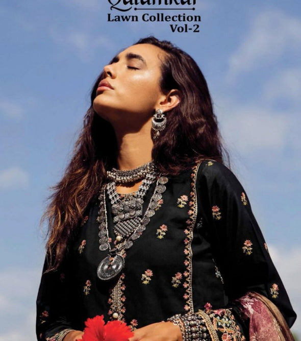 Catalog QALAMKAR LAWN COLLECTION VOL 2Pcs 5AVG. Price 979Full Price 4895Size Unstitched,Fabric DetailsTOP PURE COTTON WITH EXCLUSIVE EMBRODERYBOTTOM SEMILAWNDUPPTA TABY SILK & 1 DES WEAVING VISCOSE