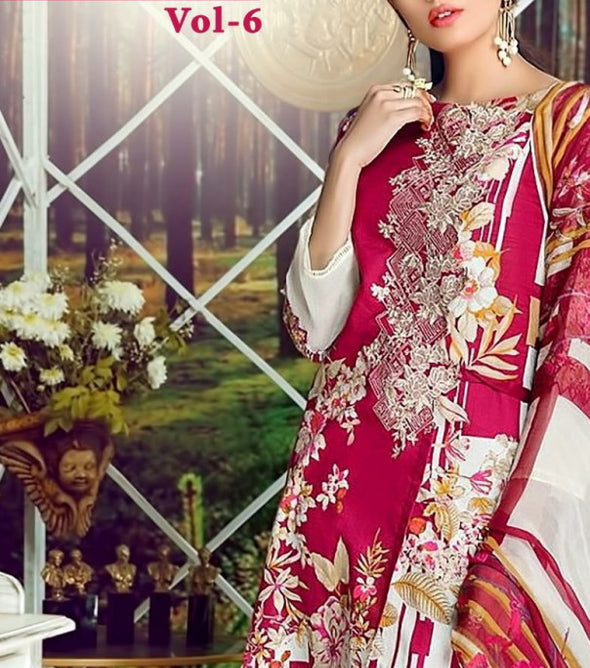 Catalog ALMIRAH VOL 5Pcs 7AVG. Price 899Full Price 6293Size Unstitched,Fabric DetailsTOP PURE LAWN WITH EXCLUSIVE EMBRODERYBOTTOM SEMILAWNDUPPTA NAJMIN SIFFON EMBRODERD