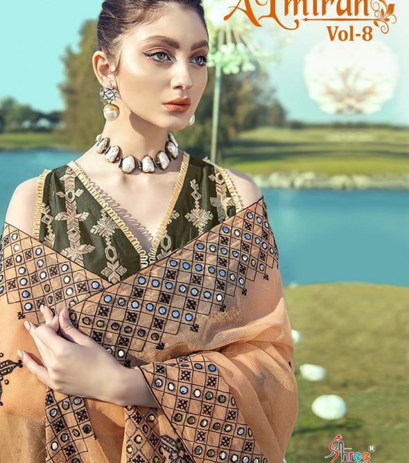 Shree Fabs Almirah Vol-8 Pakistani Style Heavy Suits CatalogTop pure cotton with exclusive karachi embrodery Bottom semilawn Duppta NAJMIN NET EMBRODERD DES 5Rate 1099+ gst