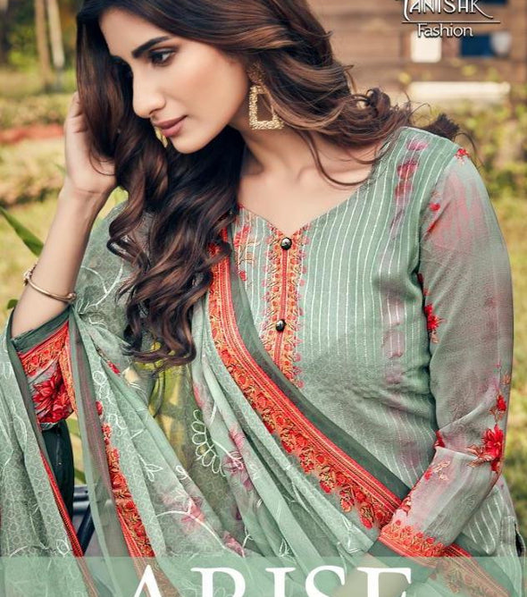 Catalog TANISHK FASHION ARISEPcs 8AVG. Price 995Full Price 7960Size UnstitchedDescription:-ARISE1:-Top:-Pure Gorgette with digital print & with sequence work2:-Bottom/inner:-santun3:-Dupatta:-Silver ciffon with digital print with embro work