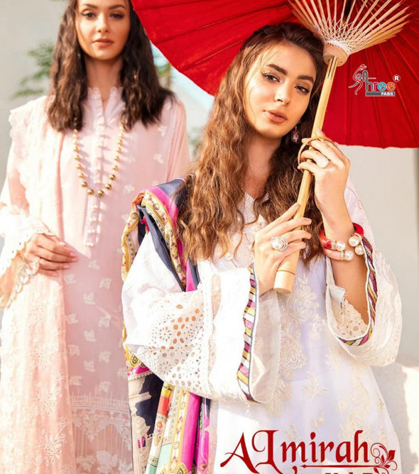 Catalog SHREE FABS ALMIRAH VOL-7Pcs 7AVG. Price 1051Full Price 7357Size Unstitched Fabric DetailsTOP PURE COTTON WITH SELF EMBRODERYBOTTOM SEMILAWNDUPPTA NAJMIN & TISSUE WORK & TABBY SILK DIGITAL PRINT