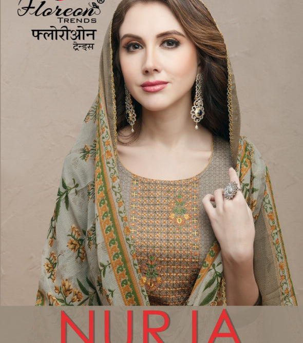 Catalog Floreon Trendz NurjaPiece 10Rate of Per pc 665Price 6650Size UnstitchedFabric Pure CottonTop HEAVY JAM SATIN WITH FANCY EMBROIDERY | 2.50 Mtrs Bottom SEMI LOAN | 2.60 MtrsDupatta PURE...