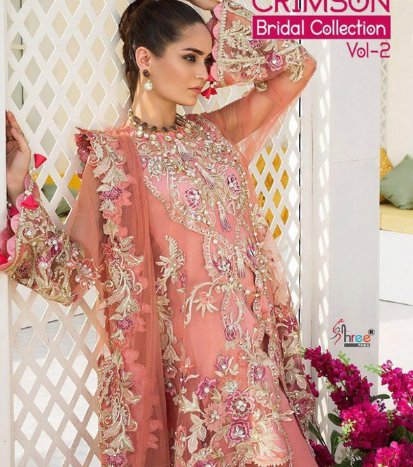 Shree fabs presents super duper hit catlougeCRIMSON BRIDAL COLLECTION VOL2Top heavy butterfly net with heavy embrodery & handworkBottom inner santoonDuppta embrodery net& foil printTotla Designs 7Rate 1599 / pcs