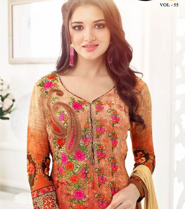Top- Georgette Digital top with work | Bottom-Santoon | Inner-Santoon | Dupatta-Georgette Digital printed